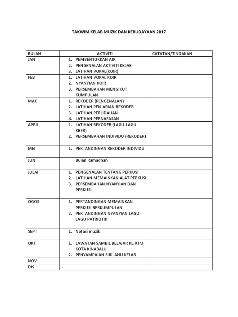Takwim Kelab Muzik Dan Kebudayaan 2017 Pdf