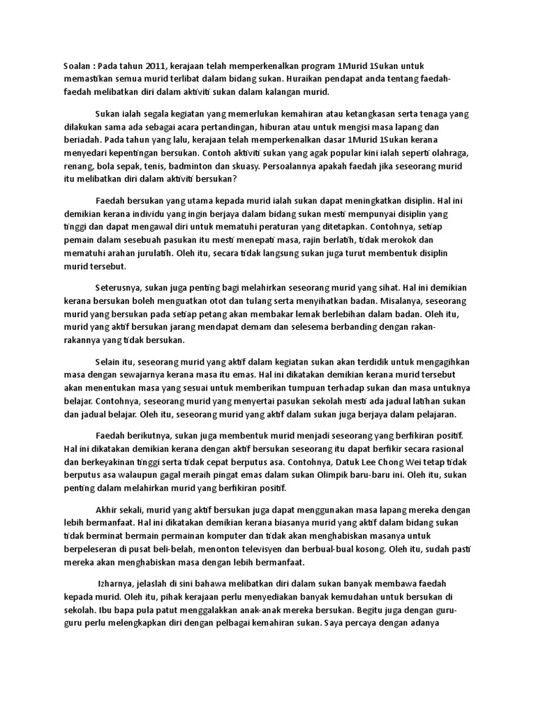 Karangan faedah faedah aktiviti sukan kepada pelajar pt3. Peluh dan toksik dalam badan dapat dirembes keluar dengan melakukan. Karangan UPSR Saturday 10 January 2015 Karangan Fakta. PT3 - KEBAIKAN KOKURIKULUM.