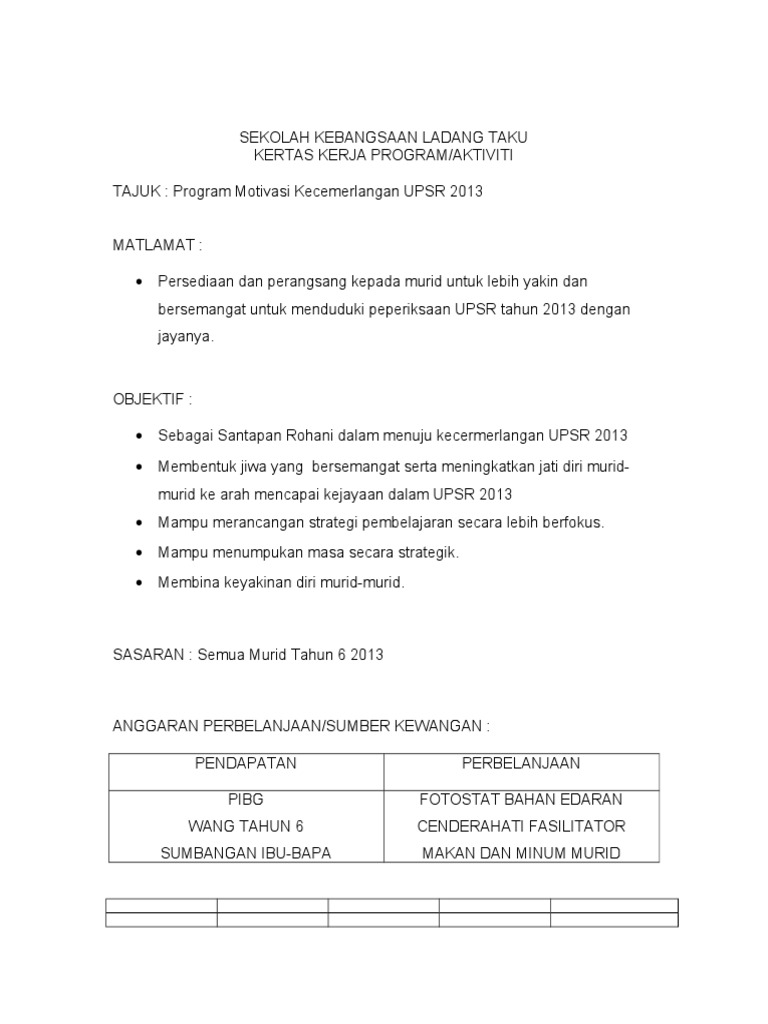 Doc Kertas Kerja Program Motivasi Kecemerlangan Upsr Siri 1 2017 Sk Pos Raya Fadzir Shaharuddin Academia Edu