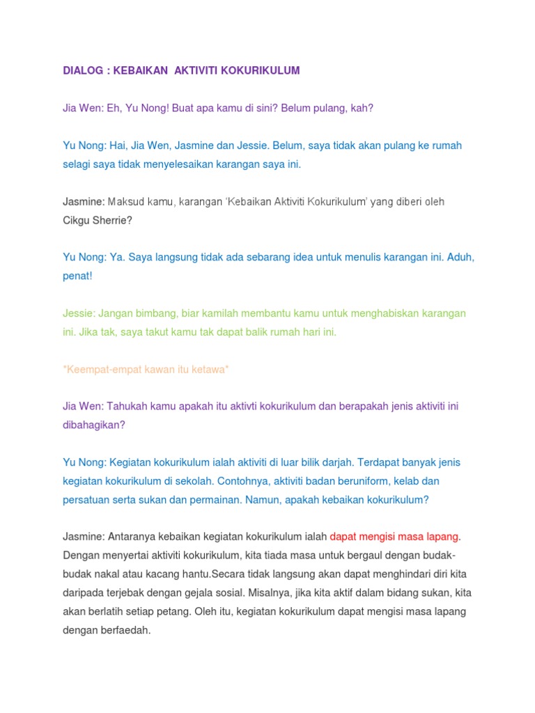 Penulisan Dialog Kebaikan Aktiviti Kokurikulum Pdf