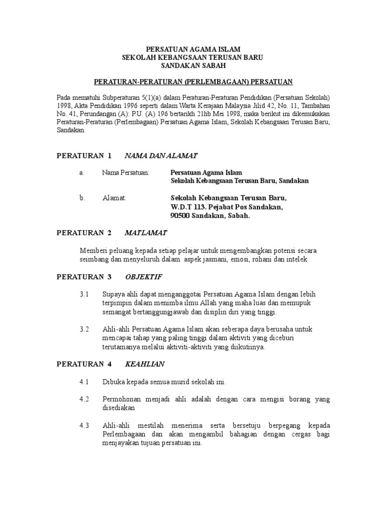 Persatuan Agama Islam Sekolah Terusan Baru Pdf