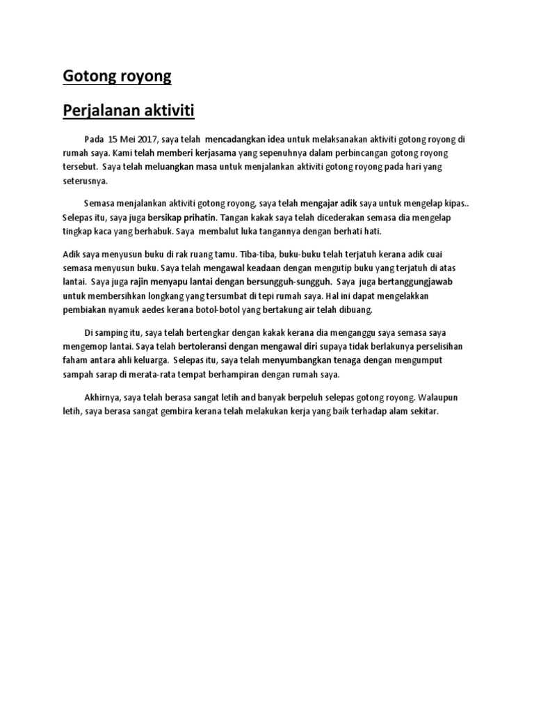 Oleh Koentjaraningrat 19612 Gotong. Oleh itu kita perlulah bersama-sama menjaga hubungan dengan jiran tanpa mengira agama kaum budaya dan bahasa. KARANGAN RANGSANGAN Gotong-Royong Aktiviti bergotong-royong telah diamalkan oleh masyarakat di negara kita sejak dahulu lagiTerdapat banyak kebaikan jika amalan ini diamalkan oleh kita.