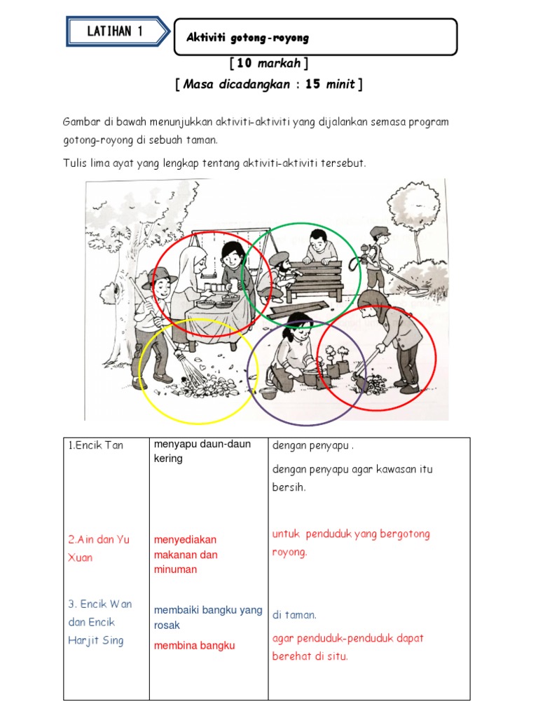 Tulis lima ayat yang lengkap tentang gambar di bawah. Baru-baru ini penduduk di kawasan perumahan anda telah mengadakan aktiviti gotong-royong bagi mencegah pembiakan nyamuk aedes. 30 nama program gotong royong perdana 40 matlamat matlamat gotong royong.