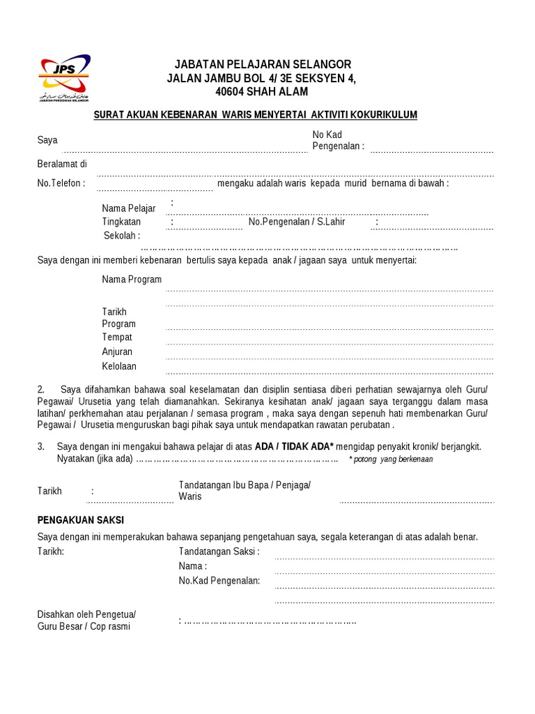 SURAT AKUAN DAN KEBENARAN IBU BAPA JABATAN PELAJARAN JOHOR. Jesselton Sabah Kebenaran Memasuki Sabah Daripada. Menentukan aktiviti surat-menyurat dan minit mesyuarat difailkan dengan baik.
