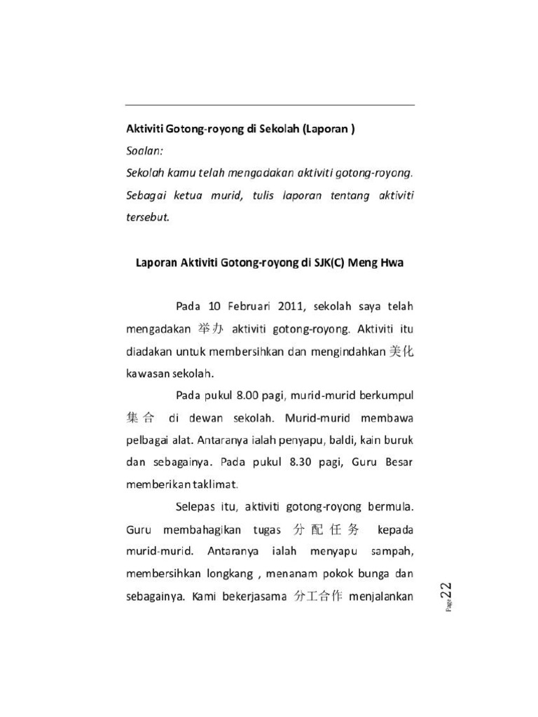 Aktiviti Gotong Royong Di Sekolah Karangan Aktiviti Gotong Royong Di Sekolah Pernah Sekolah Berjumlah 15 Orang Karno Salase